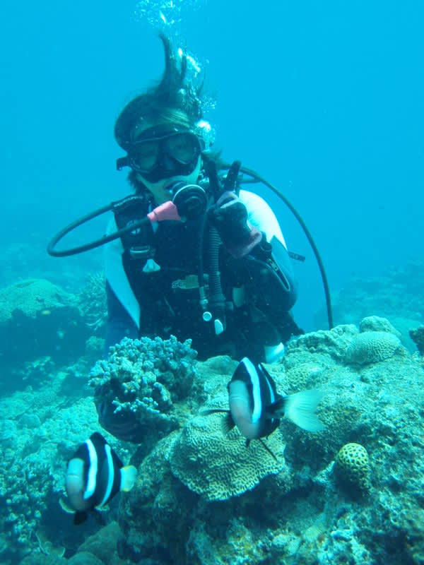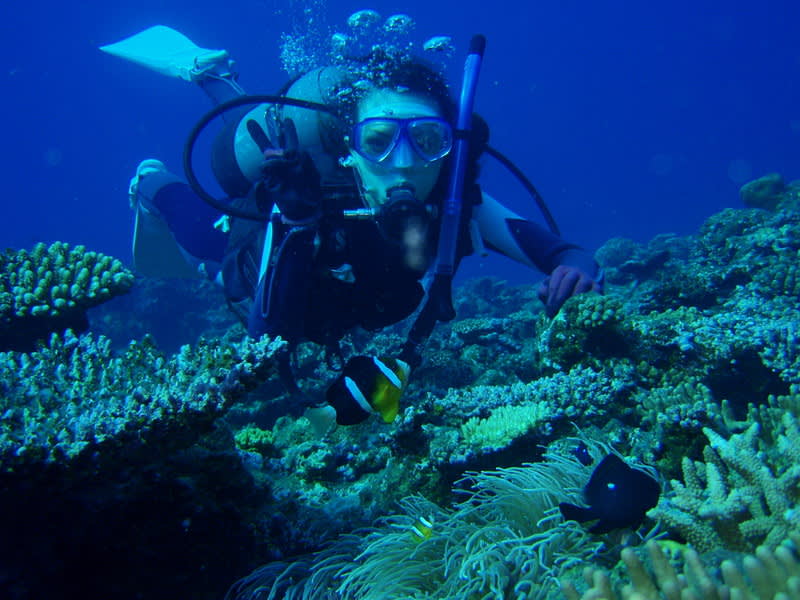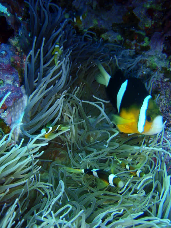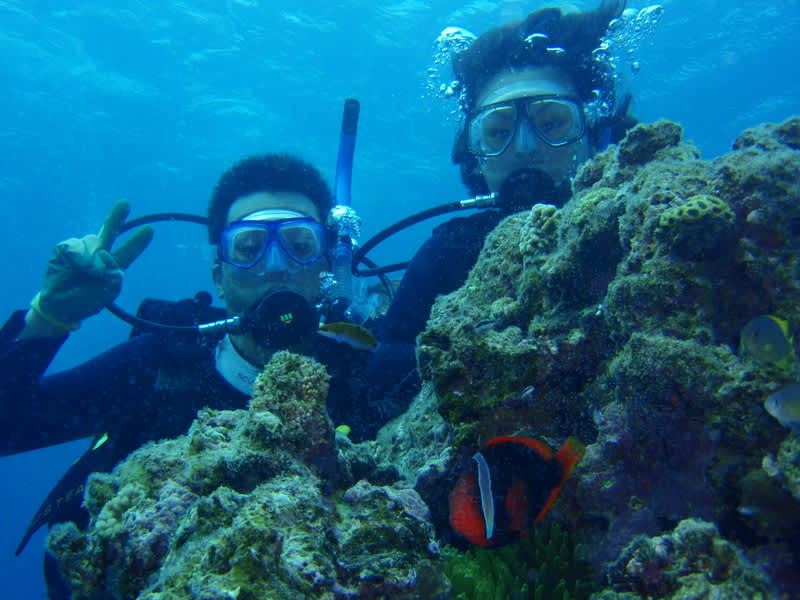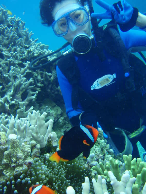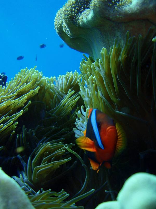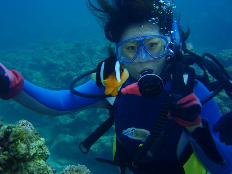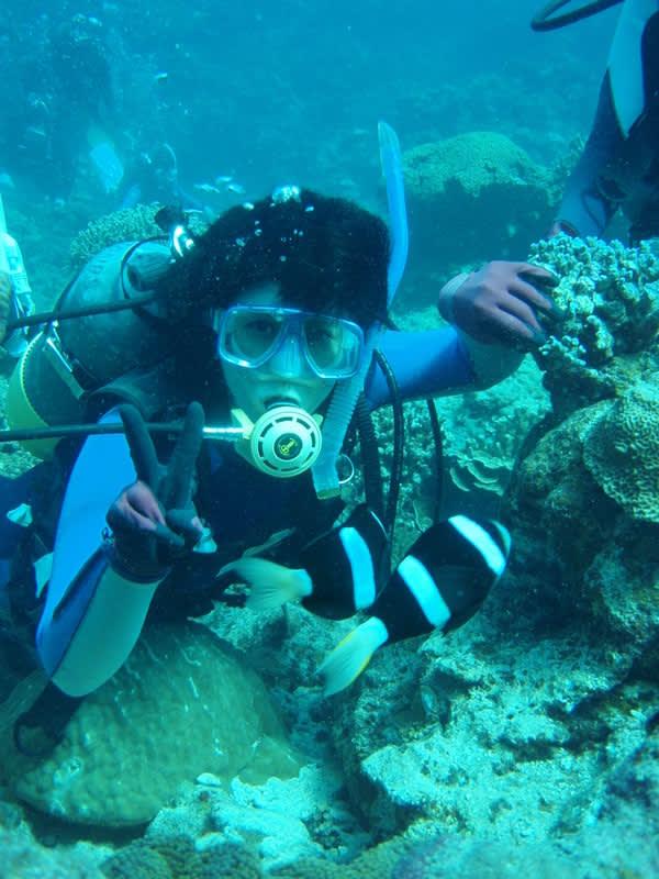 水中では、沢山のクマノミや他の魚たち、そして気持ちの悪いナマコなどと戯れ、船の周りを泳ぎました(*^_^*)