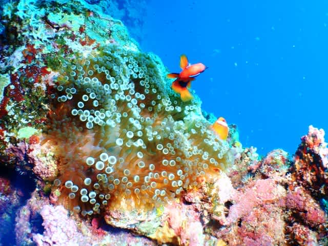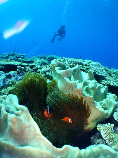 ここでは、サンゴはもちろん、いろんな貝を見たり、やっぱりクマノミと戯れたりして遊び、本日も無事に終了です(^^♪