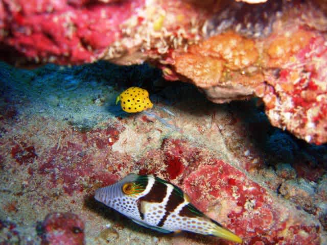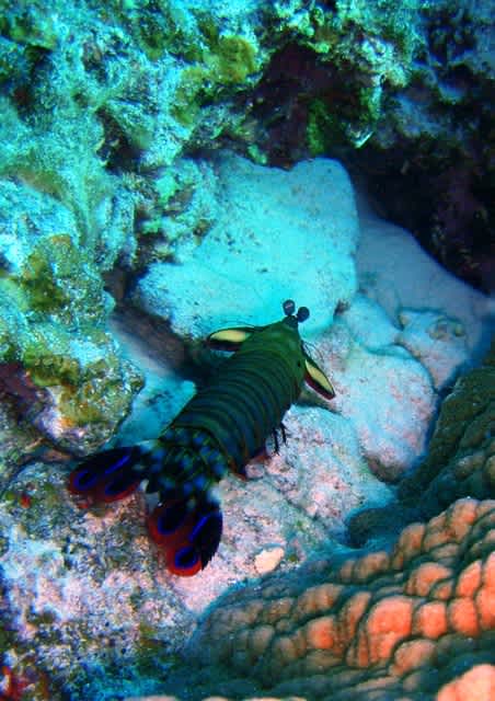 出てくるモンハナシャコとか、砂地に隠れてるヤッコエイなどなど
