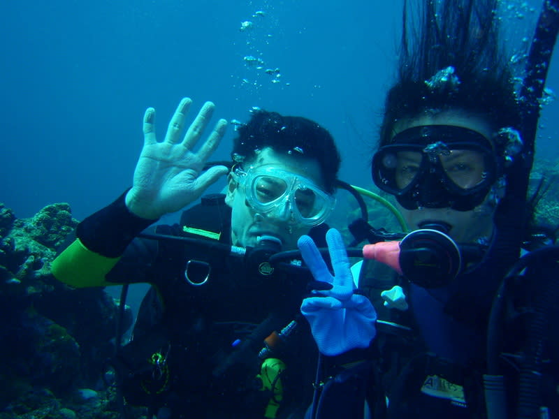 今日の体験ダイバー、ダイビングをするのが初めてで、最初は少し戸惑っていましたが、水中に入って、呼吸の練習をし、耳抜きができれば、あとはゆっくりと潜っていくだけ(^^♪