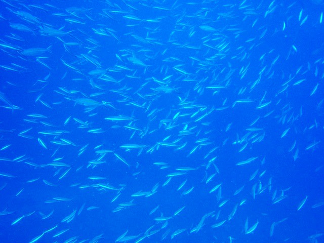 流れに逆らって、頑張って前へ泳いでいくと、下には沢山のダイバーの姿が!