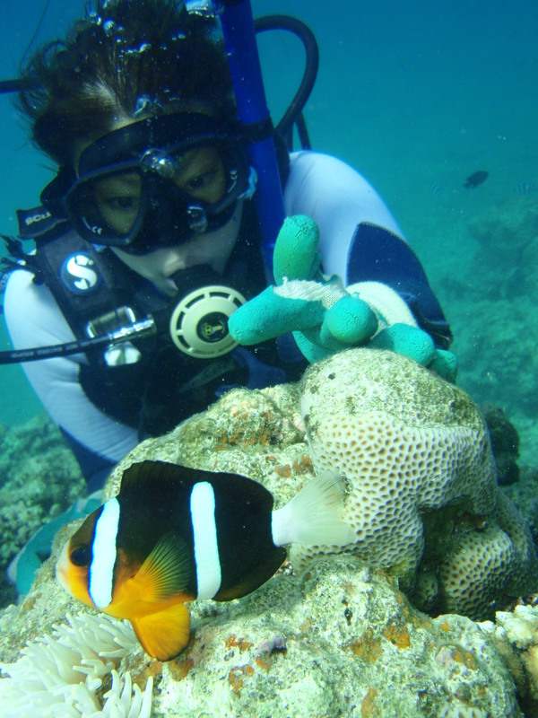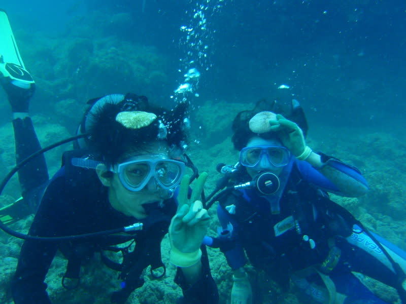 ダイビング、初体験で耳抜きに少し戸惑った方もいましたが、みんな無事に水底まで到着し、たくさんのクマノミたちと戯れ、いっぱい泳ぎました(^_-)-☆