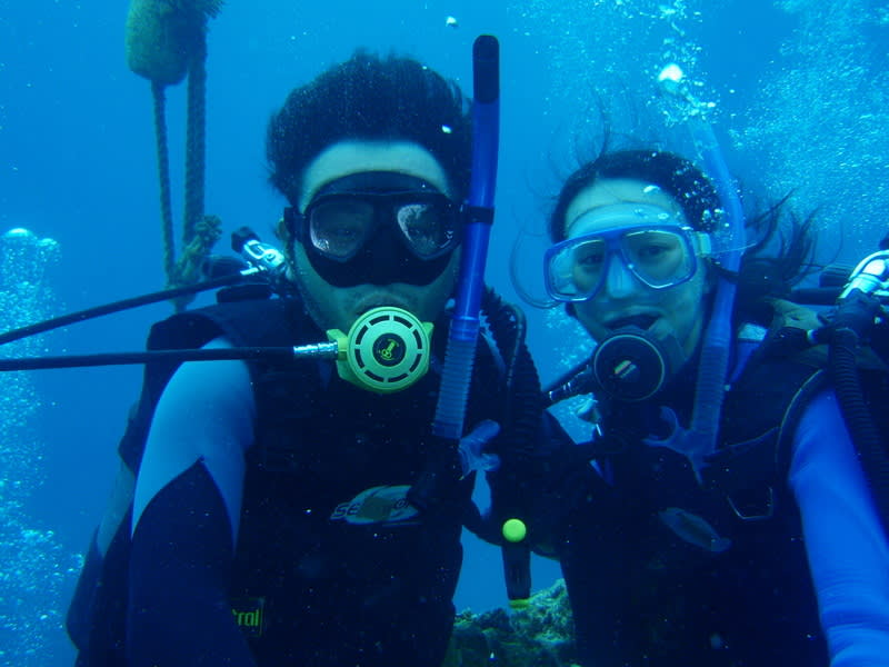 水面はバシャバシャでしたが、水中は良い感じブルーの海が