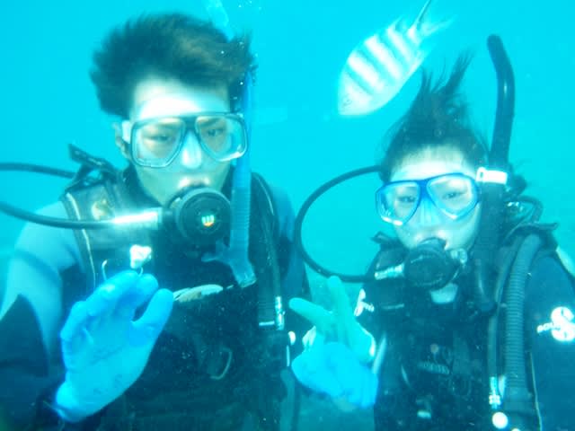 まずは大崎でスノーケル&ダイビング(o^-^o)