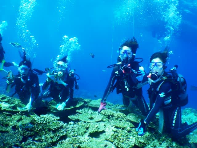 ダイビング、初体験で耳抜きに少し戸惑った方もいましたが、みんな無事に水底まで到着し、たくさんのクマノミたちと戯れ、いっぱい泳ぎました(^_-)-☆
