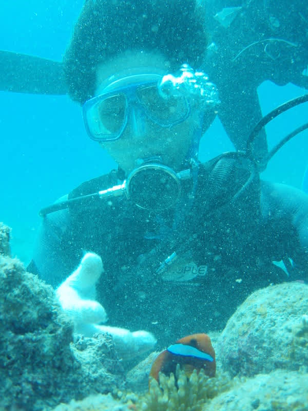 初めて見る水中の世界には、クマノミがいたり、ナマコがいたり、巨大ミノカサゴがいたり、大きなナポレオンが登場したりと、小さいものから、中くらいのものも、大きなものまで、いろんな生物がいて、とっても楽しいですね(*^_^*)