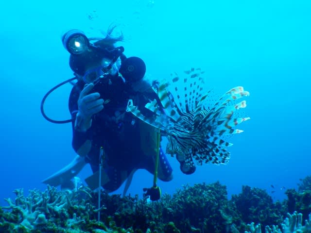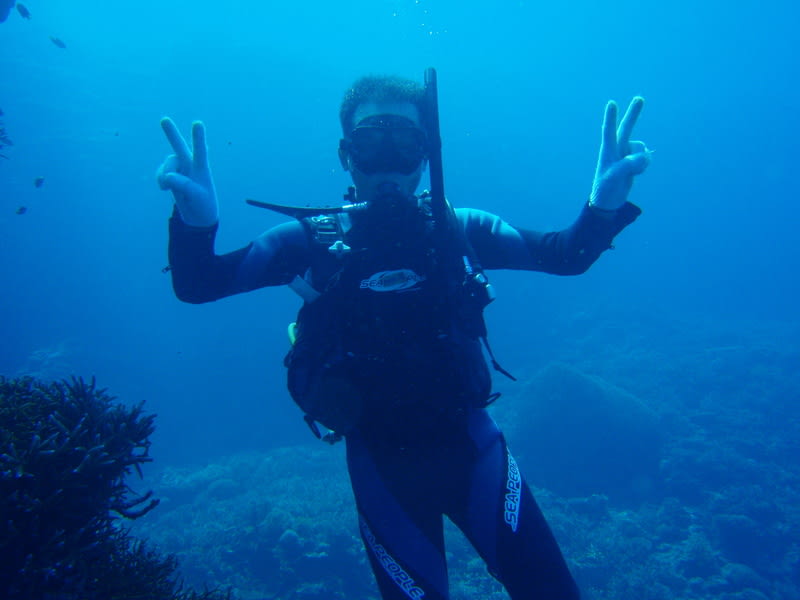 最初は、なかなか呼吸器をくわえての呼吸に慣れずに、ちょっと戸惑いましたが、練習とともに呼吸も慣れてきて、ゆっくりと耳抜きを確実にしながら潜降していくと、そこには今までに見たこともないような世界が広がっていました\(◎o◎)/!