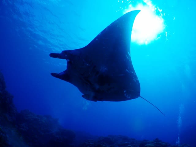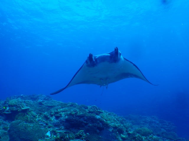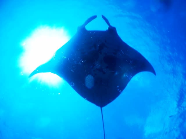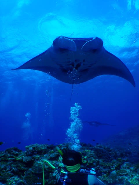 潜って、泳いでいくと2枚のマンタが向こうから近づいてきて、僕らのすぐ目の前を泳いでくれました(*^_^*)