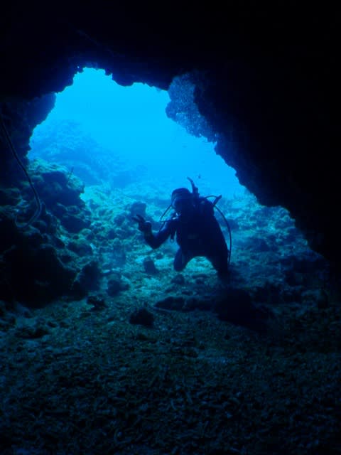 2本目は、砂地のイメージをガラリと変えて地形ダイブを楽しんで