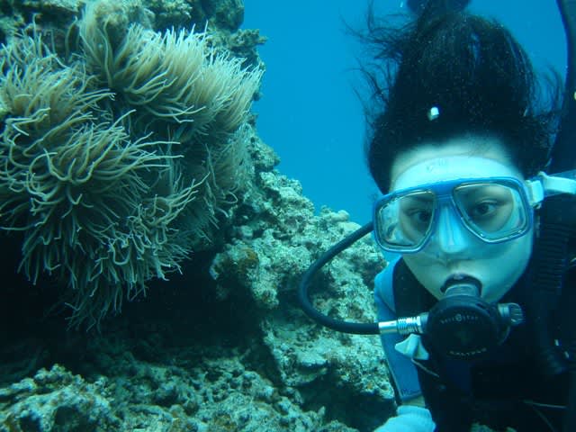 慣れてきた所で、今度は泳いで、みんな大好きクマノミハウスへ!