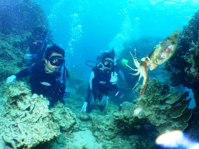 ふと上を見るとシュノーケルチームもしっかりコブシメを見てました(*^_^*)