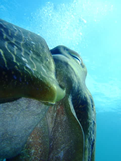 みんな余裕~な感じで潜降し、でっかいコブシメのオス同士の