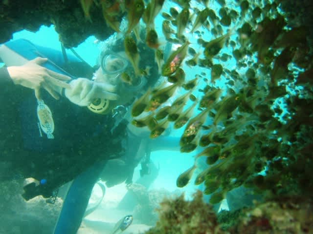 ダイビングでは、日差しをいっぱいに浴びてるサンゴに癒されたり、