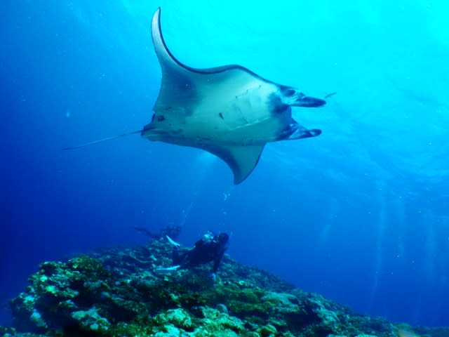 いつの間に来たのか、マンタが泳いでいるではありませんか(^_^;)