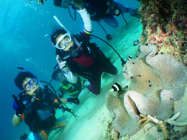 サンゴの綺麗なポイントメインで今日は潜ってきましたよv(*’-^*)b