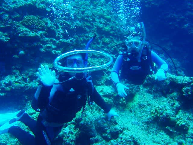 体験ダイビングチームはシュノーケリングで水慣れも含めて元気いっぱいに泳ぎました(^_^)