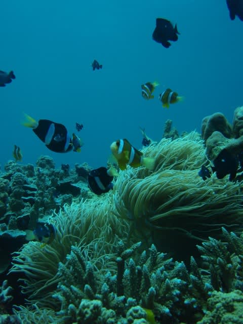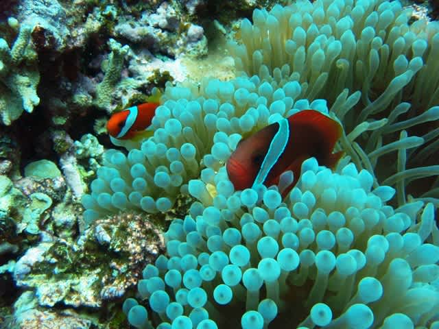 水中は透明度も良くて、水中にはクマノミやハマクマノミなどを見たり