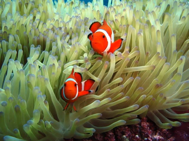水中ではイソギンチャクエビやカクレクマノミ、それとたくさんのソフトコーラルも