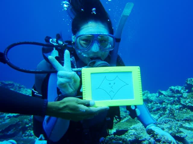 マンタを見た後はスレートを使ってマンタのお絵描きコンテストをしちゃいました(^o^)