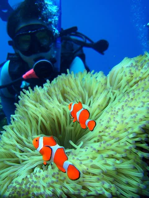 カクレクマノミを見たり、ソフトコーラルを触ったり