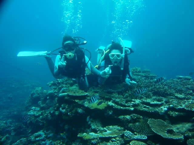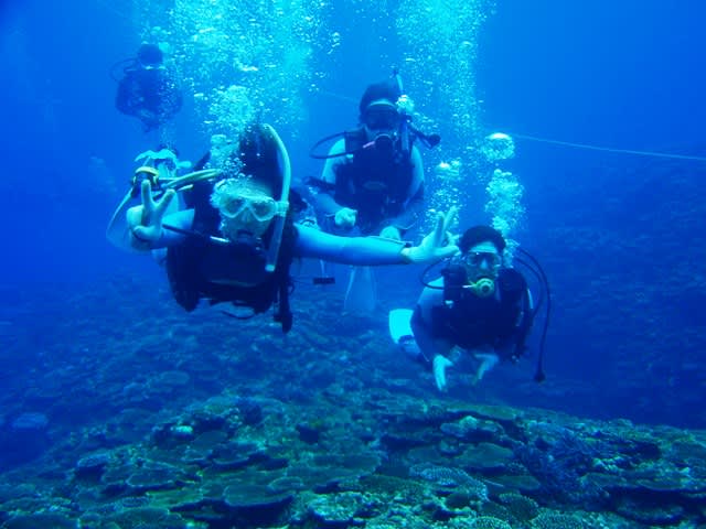 今日はみんな初めてのダイビングで水中に潜る前は少し緊張してましたね♪