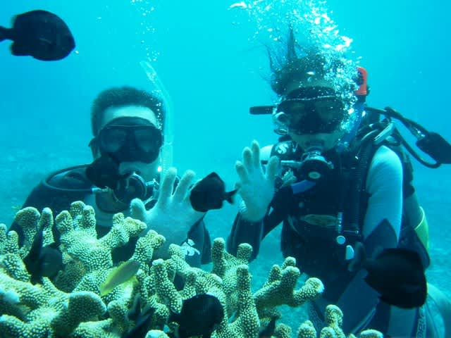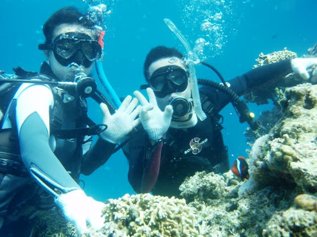 人生初のダイビングでドキドキしながら、いざ水中へ(^o^)