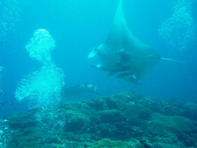 大きなマンタをしばらく見ていると、マンタの後ろに1枚のマンタが!!