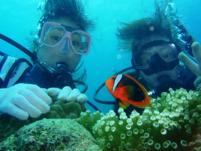 いろんな種類のクマノミを見て戯れたり、
