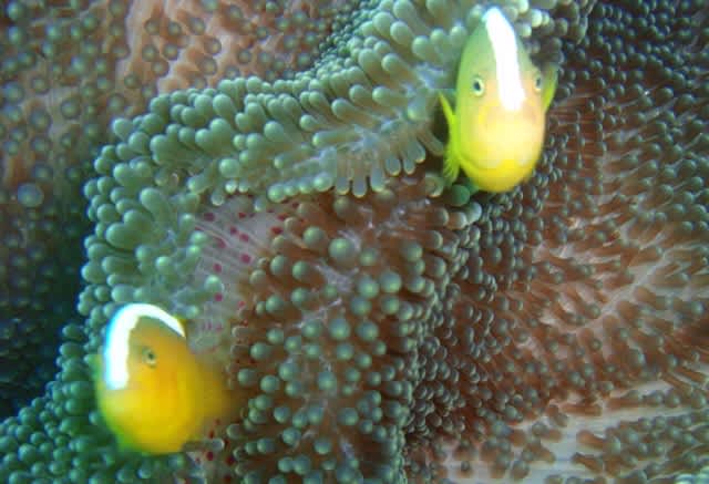 石垣らしいスズメダイの群れや、クマノミたちをじっくり見たり、