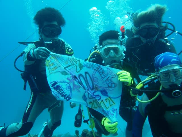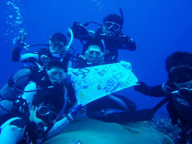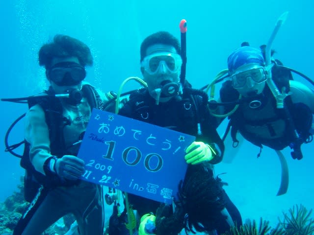 100本記念でサジさん、50本記念でイナダさんで、水中でみんなでお祝いです♪♪♪
