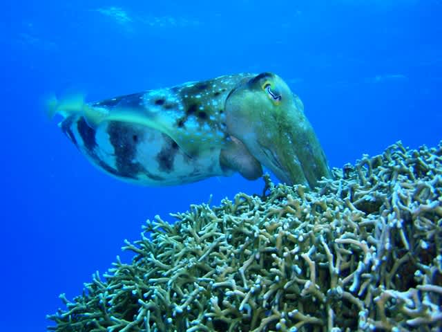 ここで産卵してるコブシメはものすごく強気というか、恐いものナシなしな感じ!