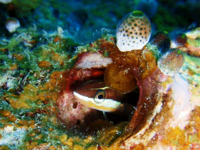 1本目は、ナマコと記念撮影したり、ハナヒゲウツボを見たり、ユカタハタの