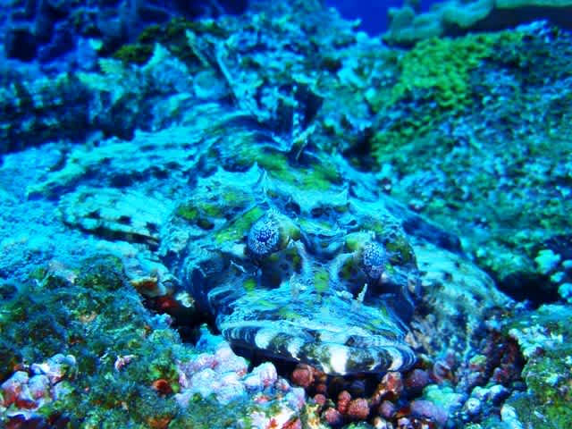 クリーニングシーンを見たり、鬼さんの顔のようがオニダルマオコゼを見たり