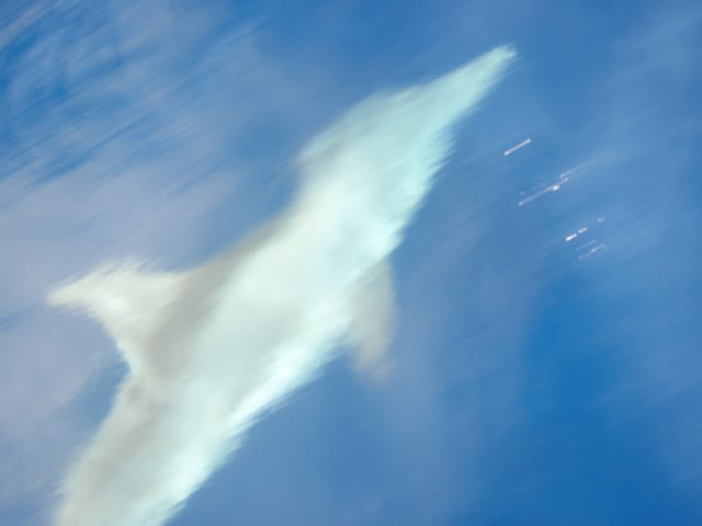 イルカがひょン?ひょン?水面をジャンプしてて、近くまでボートで寄ってくと