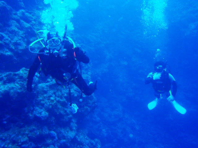 マンタを探しながらドロップ沿いを泳いでて、ふっと後ろを向くと!