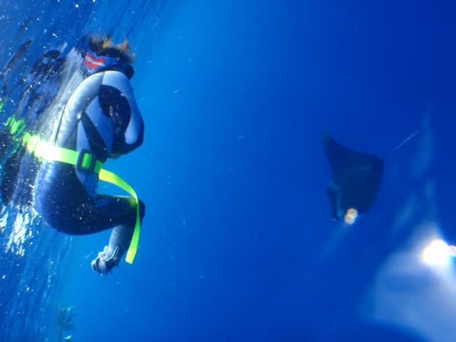 スノーケルマンタ朗を見にダッシューです!!すると水面付近に2枚のマンタ朗を