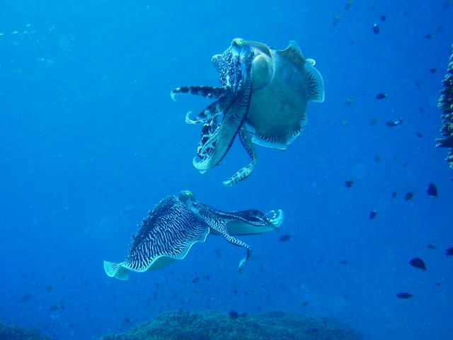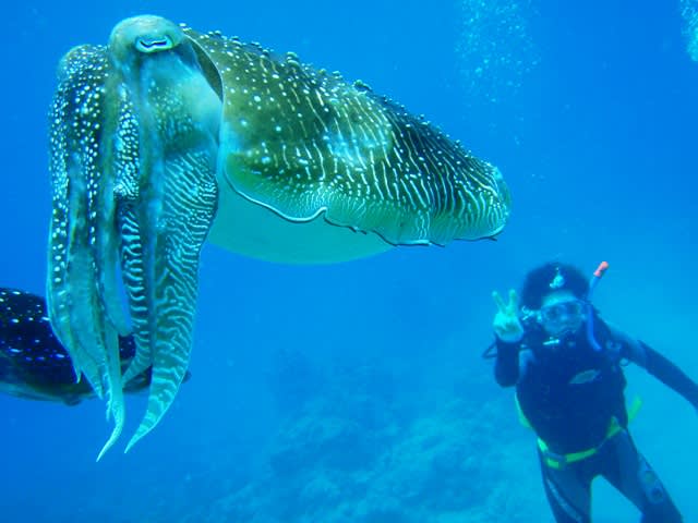 今日はダイバーもコブシメもいっぱいで水中ワサワサなかんじ(゜ー゜;A