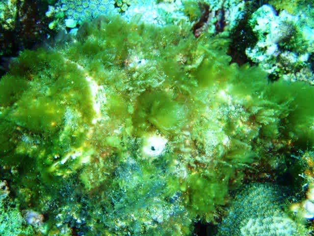 ボートの下には鬼の顔したオニダルマオコゼが居たり、大きなイソマグロ
