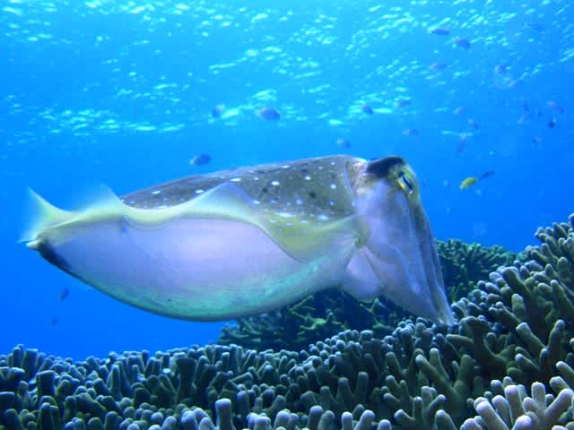 水中ではまたまたクマノミを見たり、大きなコブシメをじっくり眺めたり