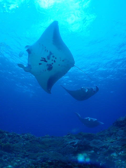 メインの根に到着すると出るわ、出るわ4枚のマンタ朗が優雅にホバリング