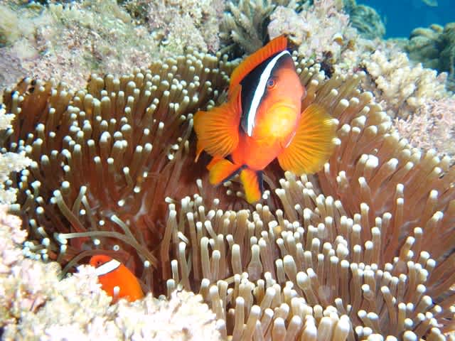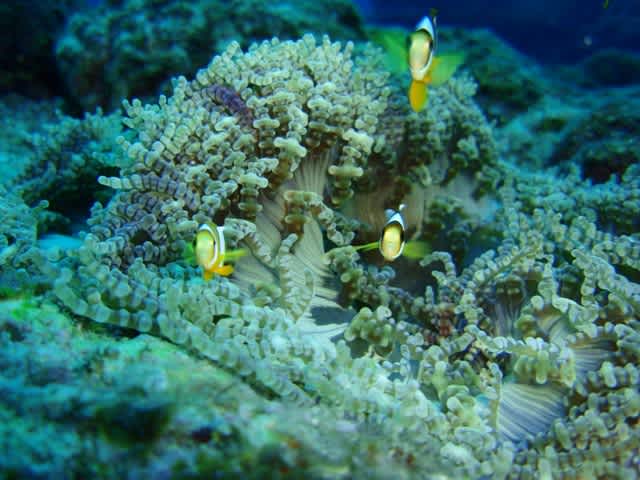 水中ではクマノミや色とりどりのサンゴを見たり、水中を泳いで