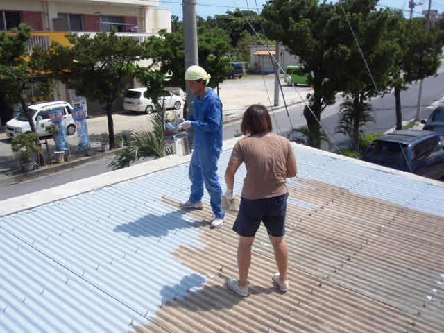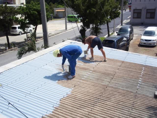 雨漏り対策して、サビ止め塗って、ペンキ塗ってますヘ(・_・ヘ)