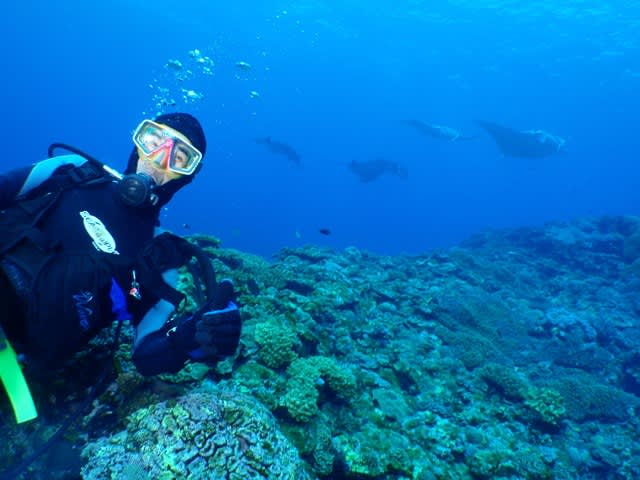 昨日のしけ時化でウネリは少しありましたが、水中はマンタ朗フィーバーして