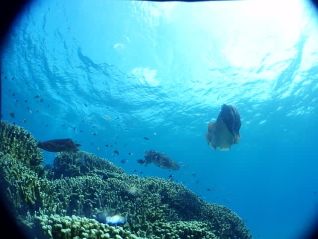 超ラッキー、羽ばたくように泳いで行くカメを見ながら興奮しっぱなしでした(*^_^*)