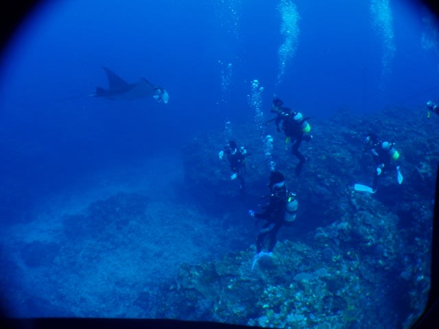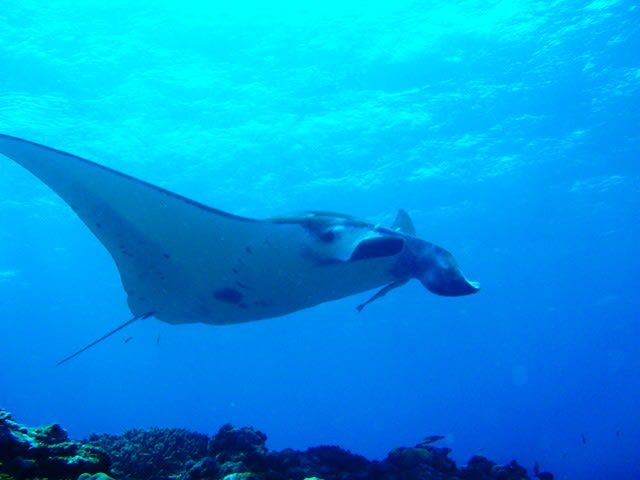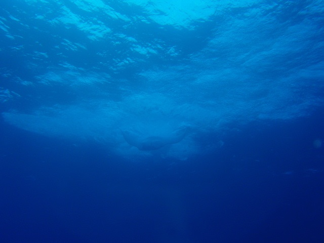 一枚のマンタ朗はゲストの近くを通過したかと思ったら、急潜降?急浮上!!