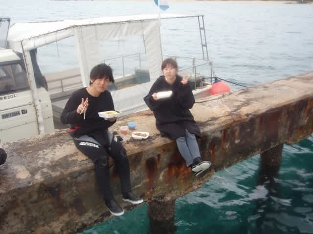 ランチは上陸気分で、昔養殖場だった所に泊めてみたりしてヾ(@⌒▽⌒@)ノ