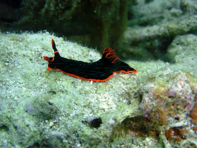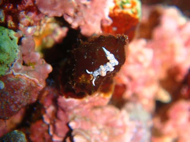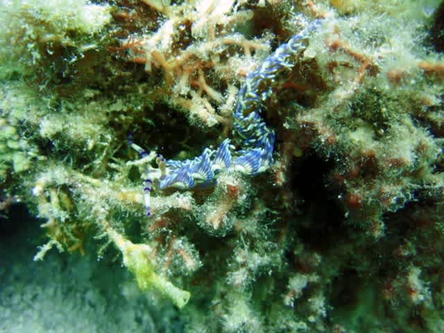 ウミウシの綺麗な色に癒されつつ水中を移動していくと、