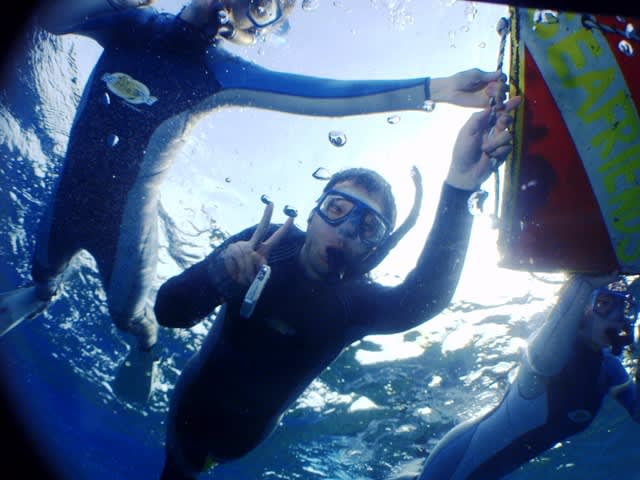 ポイントに着くとまずシュノーケルをしたのですが、想像以上に波が高かった為