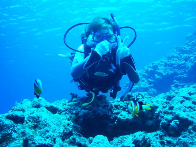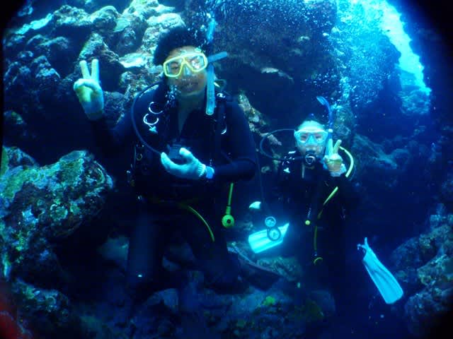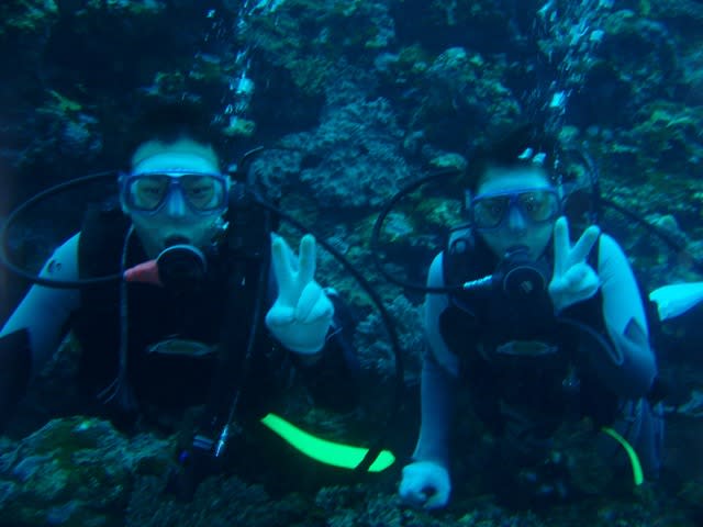 ヒラカワさんとヤマナカさんの体験チームは楽しく2本潜ってきましたよーv(*’-^*)b