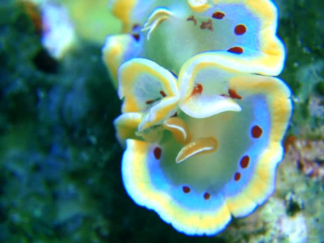 ソフトコーラルの脇に隠れてるウミウシやら、